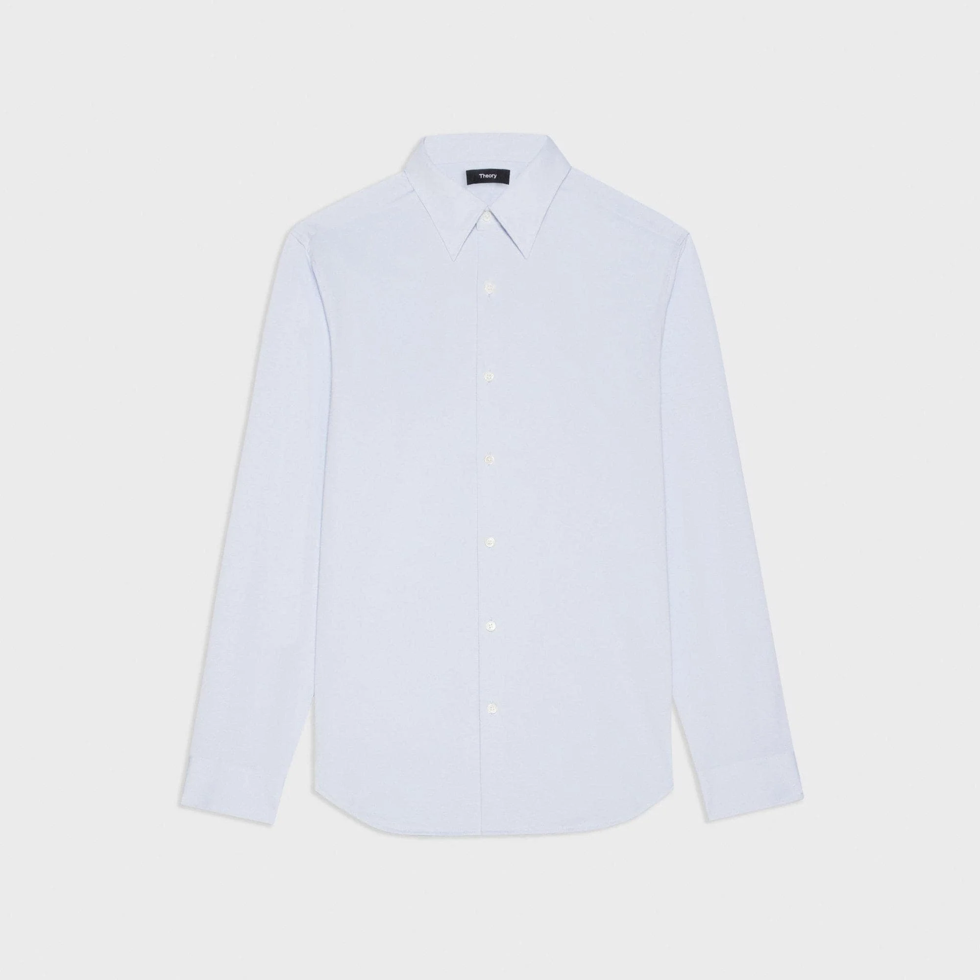 A tailored style with minimal detailing, our Sylvain shirt is designed with a structured point collar, and a longer hem that easily tucks into your pant. Cut from an ultra-compact knit with inherent stretch from one of Japan’s finest mills, it's designed for a comfortable, casual feel and a sharp look. This machine-washable fabric features a wrinkle-resistant construction for optimum shape retention throughout the day. Style #: J0794505 Fit True to size, choose your normal size Slim fit, long sleeves Hip length Model is 6’2”, chest 38” and wearing a US size M Materials & Care Composition 53% cotton 47% polyester Care Machine wash cold, gentle cycle. Only non-chlorine bleach when needed. Hang to dry in shade, do not tumble dry. Cool iron with press cloth if needed. Dry clean with any solvent except trichloroethylene. Imported