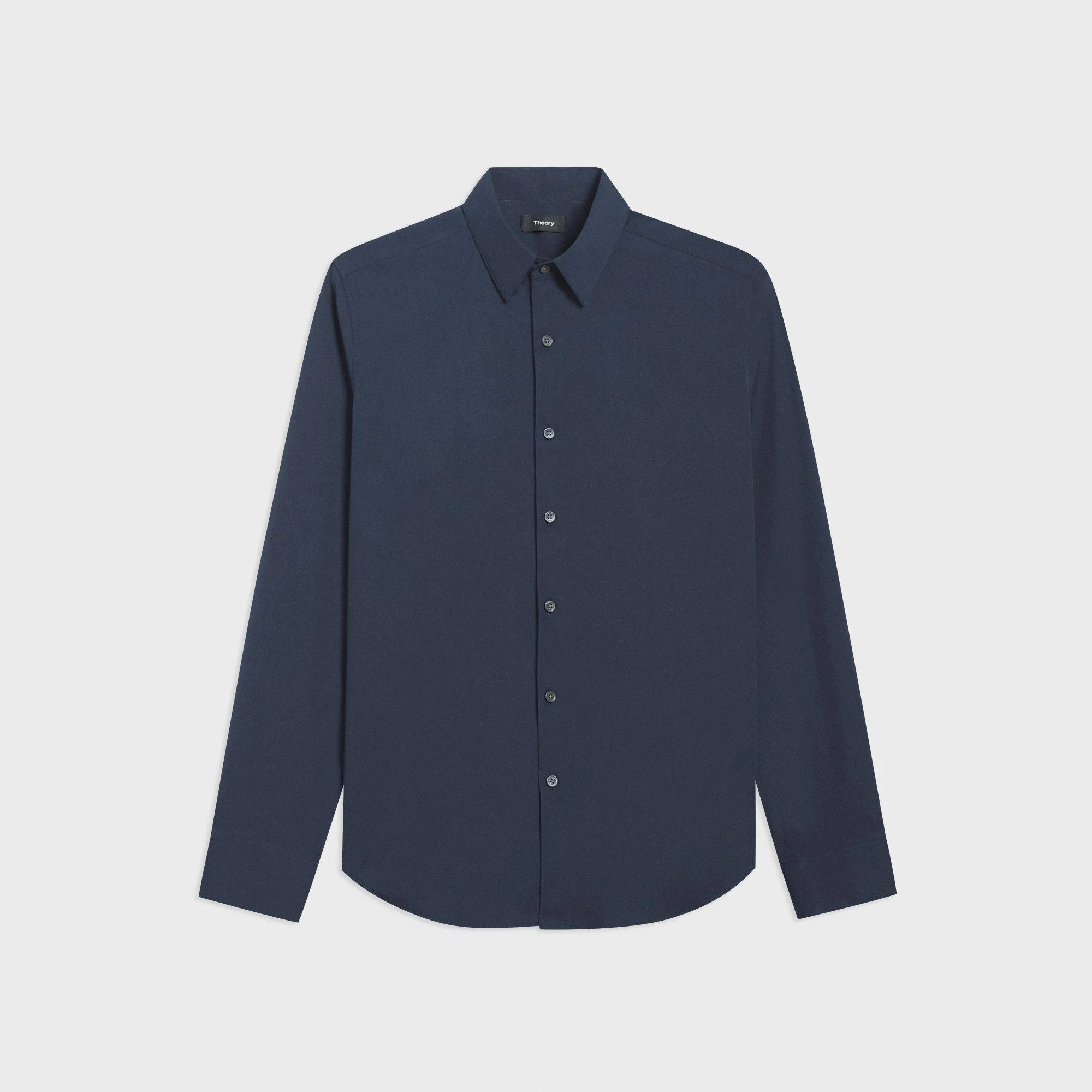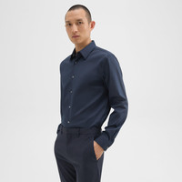 A tailored style with minimal detailing, our Sylvain shirt is designed with a structured point collar, two darts in the back for a refined fit, and an extended hem that easily tucks into your pants. It's cut from our stretch Good Cotton that looks crisp and keeps you comfortable year round. Theory for Good We are committed to making a positive impact on the people who wear our clothes, our industry, and our planet, beginning with our Good fabrics. Our Good Cotton is made with extra-long staple, American-grown SUPIMA® cotton, which is recognized as one of the softest and most durable cottons in the world. To ensure this cotton is verifiably traceable, we have partnered with Oritain™, which uses forensic science to validate our SUPIMA® cotton from the farm to the mill in Italy where it is woven into cloth. Learn more about our Good Cotton. Style #: A0674535 Fit True to size, choose your normal size Slim fit, long sleeves Hip length Model is 6’2”, chest 38" and wearing a US size M Materials & Care Composition 78% cotton 18% polyamide 4% elastane Care Machine wash warm, gentle cycle. Do not bleach. Do not tumble dry. Warm iron if needed. Dry clean with any solvent except trichloroethylene. Imported