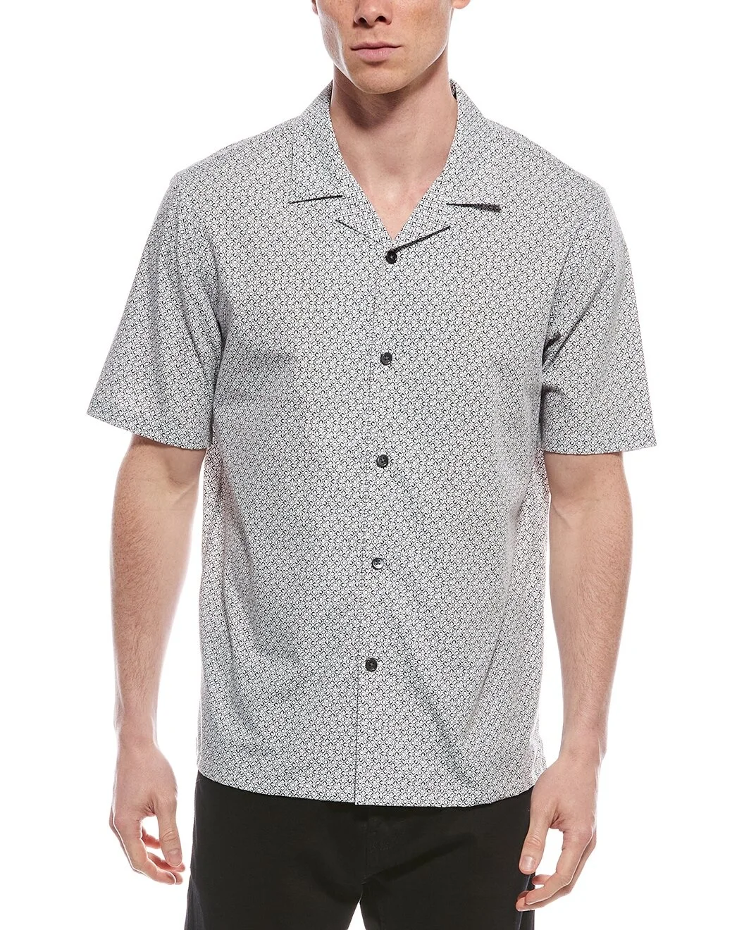- About the brand: Theory believes the perfect outfit can change the way you feel. For over 25 years, Theory has developed innovative fabrics and highly functional pieces that feel great and fit perfectly. Theory's seasonal collections are versatile, expertly tailored and easy-to wear. - Daze Shell Print Shirt in black multicolor with camp collar - Approximately 27in from shoulder to hem - Model is 6'2 and is wearing a size medium. Measurements may vary slightly by size. - Button front - 100% cotton - Machine wash - Imported - The Men's Size Guide
