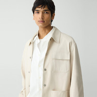 Our coat is an elevated, modern update on a utility jacket. Traditional details include a pointed collar, chest flap pocket, and side patch pockets. It shows up here in a certified organic cotton in a canvas weave with a touch of stretch produced in Turkey. Style #: P0274401 Fit True to size, choose your normal size Standard fit, long sleeves Hip length Model is 6’2”, waist 32” and wearing a US size M Materials & Care Composition 98% cotton 2% elastane Care Machine wash separately on a cold, gentle cycle. Do not bleach or tumble dry. Cool iron if needed. Dry clean with any solvent except trichloroethylene. Imported.