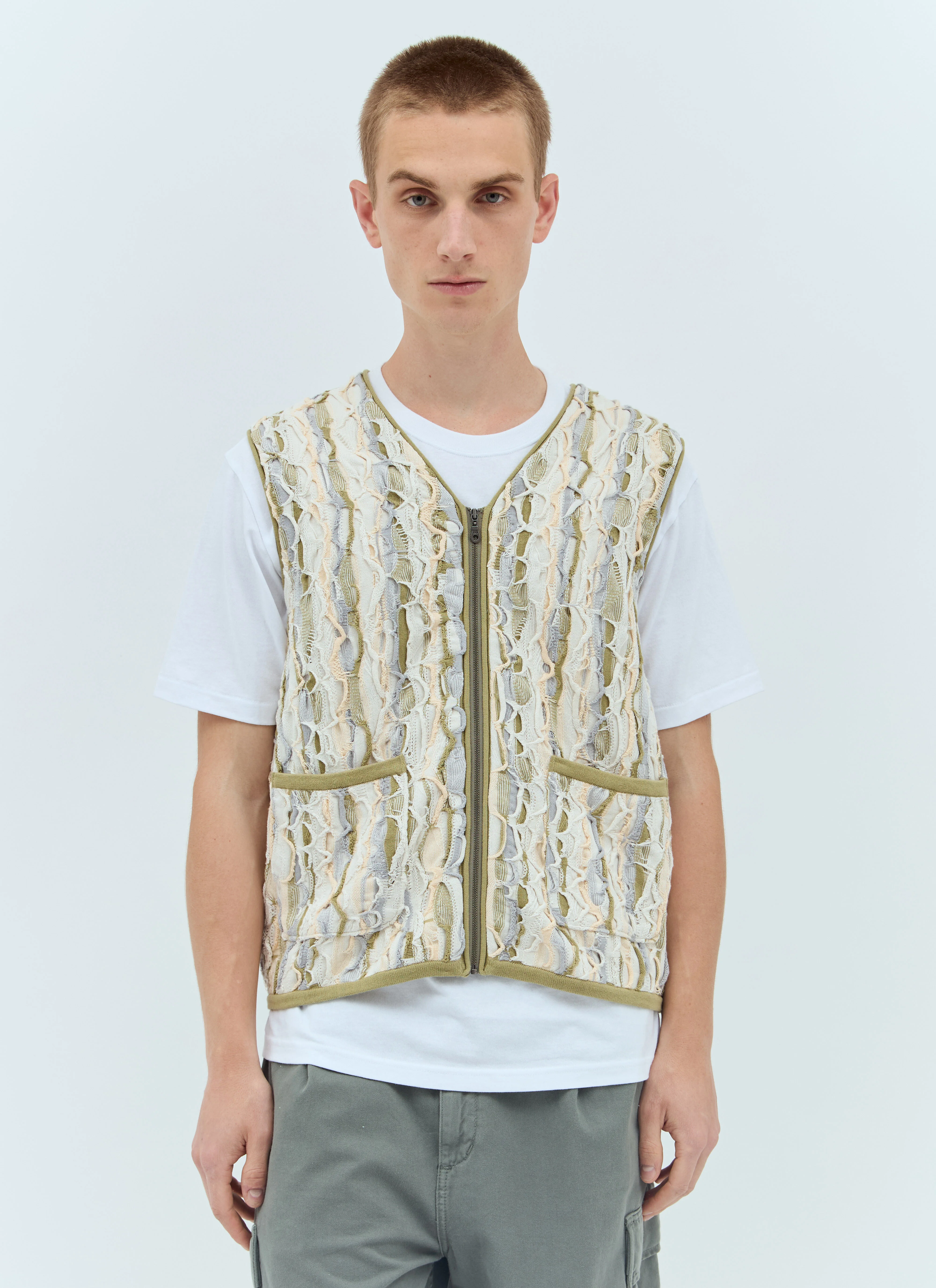 3D Cable vest in cotton marled-knit. - V neck - Front zip fastening - Front slip pockets - 100% Cotton. Hand wash - Color: Green - Code: TN241KKNZK01 Beige