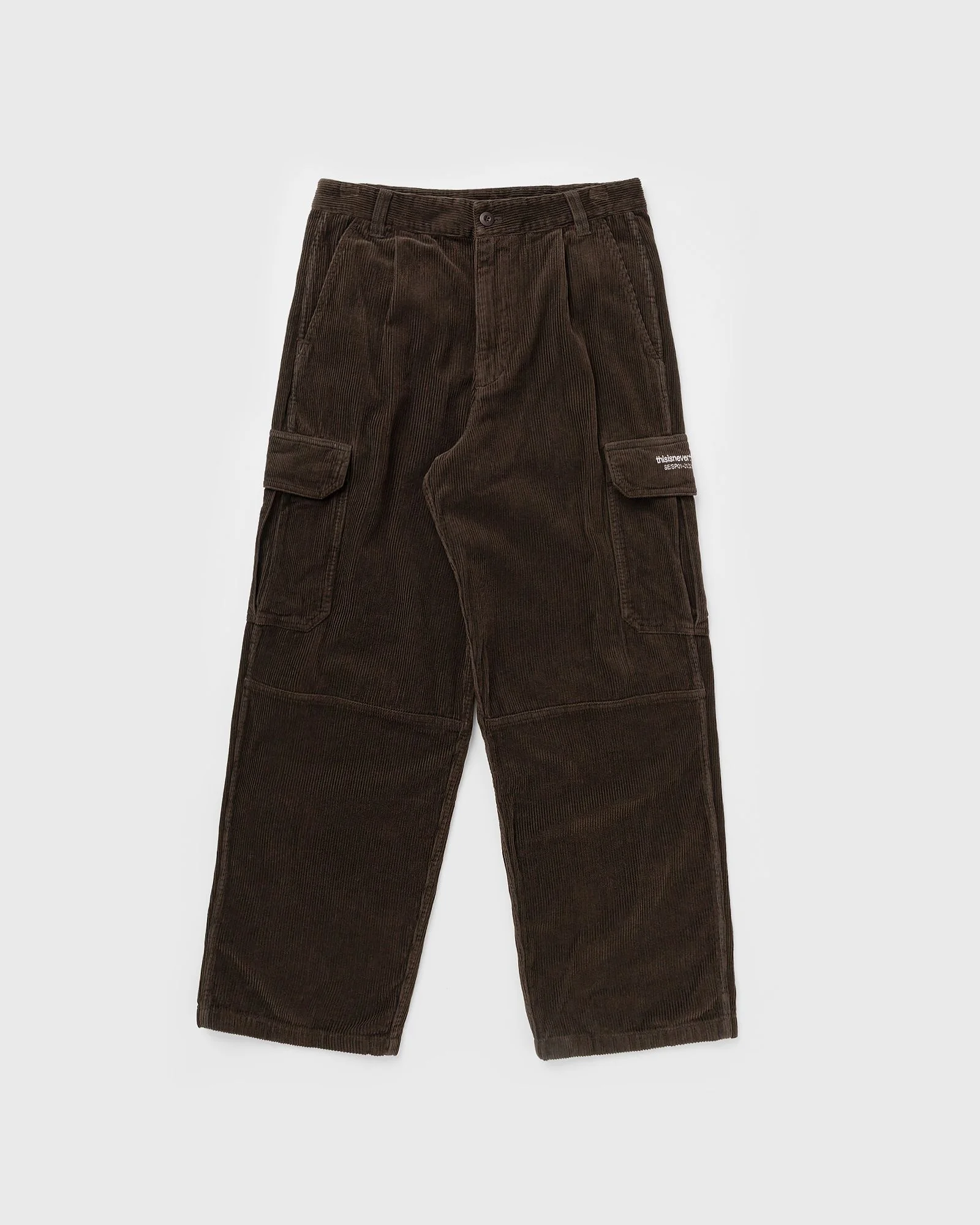 The Corduroy Cargo Pant from thisisneverthat combines rugged utility aesthetics with a modern streetwear look. With a regular fit, it is made from 100% cotton with a stone wash and bleach finish for an authentic worn look. Functional details such as a YKK #3 metal zip fly with button, slanted front pockets, cargo pockets on both sides, and belt loops ensure everyday wearability. An embroidered logo on the left cargo pocket adds subtle branding. - Regular fit - Stonewashed - Bleached finish - YKK #3 metal zipper with button - Slanted front pockets - Cargo pockets on both sides - Belt loops - Embroidered logo on the left cargo pocket Article number: TN253WPAOP01BRN Gender: men Color: BROWN Material: 100% Cotton