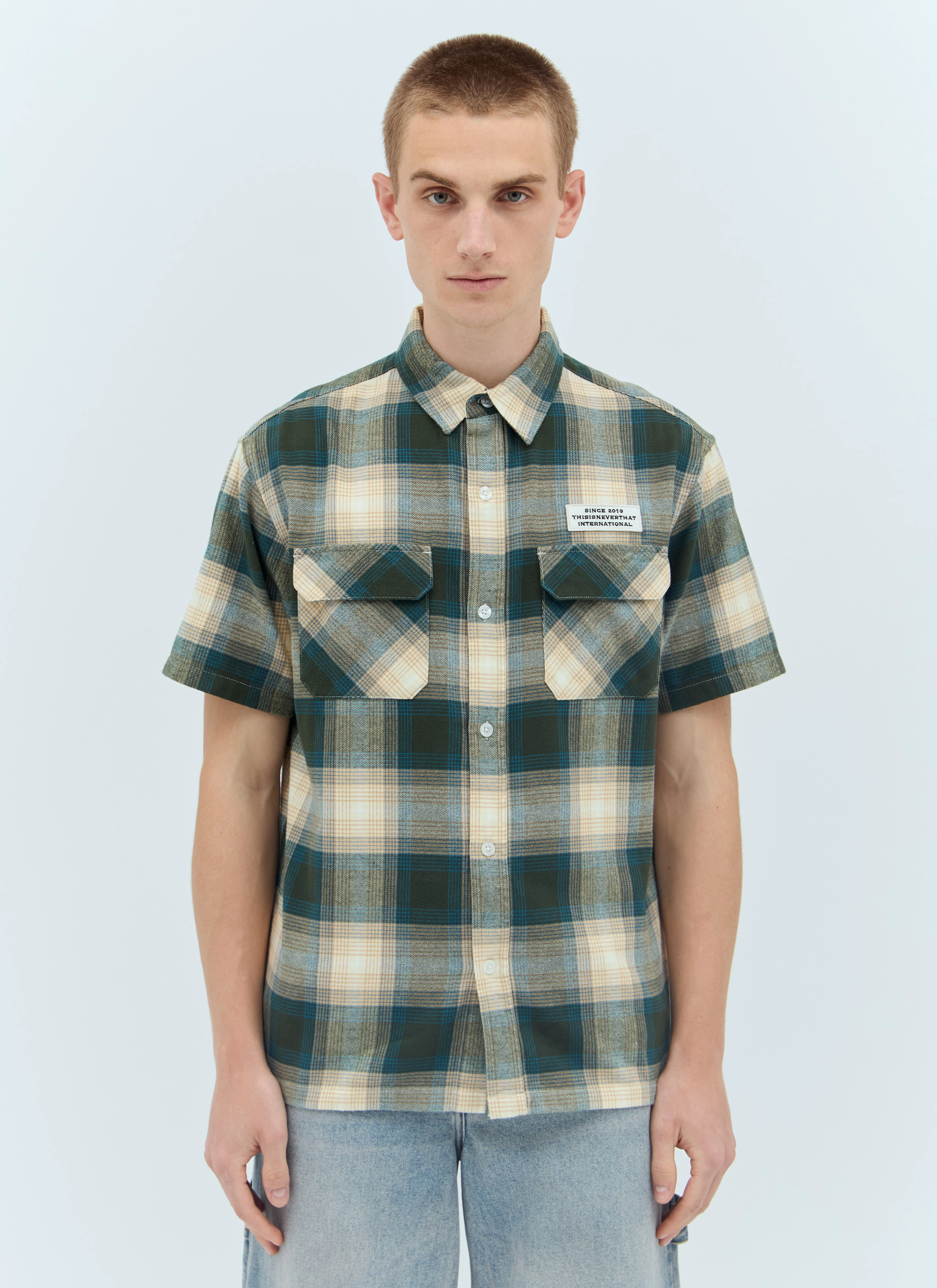 Ombre check skirt with chest logo patch. - Classic collar - Front button fastening - Short sleeves - Chest flap pockets - Chest logo patch - Rear darts - Check motif - 100% Cotton. Hand wash - Color: Green - Code: TN241WSHTS03 Brown