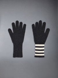 Dark Grey Gloves Contrast 4-Bar Stripe Rib-Knit Cashmere Signature Grosgrain Loop Tab MKG003A-00011-025