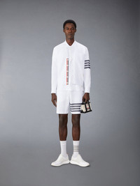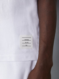 DETAILS & FIT A classic Thom Browne piece in eye-catching winter white. Pair it with our Pique 4-Bar Shorts. 4-bar detailing Partial front button closure Chest patch pocket Name tag applique Button side vents with signature striped grosgrain trim Signature striped grosgrain loop tab Model is 6' 1" (185cm), wearing size 1 100% Cotton Made in Italy MJP204A-J0155-100 - CHEST: 104.0cm - SLEEVE LENGTH: 52.5cm
