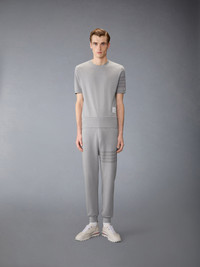 This layering essential is cut in medium-weight jersey for a structured yet comfortable feel. Garment dyed for soft color depth, it features overdyed 4-bar detailing that adds tonal dimension to the iconic motif. A balance of everyday ease and refined construction within Thom Browne’s uniform vocabulary. Ribbed neckline, sleeve cuffs, and hem Overdyed 4-bar detailing Name tag applique Signature striped grosgrain loop tab Garment dyed Model is 6'1" (185cm), wearing size 1 100% Cotton Combo 1: 97% Cotton, 3% Elastane Made in Italy MJS303A-J0253-055