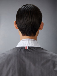 Crafted for those who demand both form and function, this lightweight layer is designed for movement—perfect for windy, wet fall days. Elevated with signature Thom Browne emblems, including our name tag and iconic 4-bar stripes, it merges performance with sophistication. Make a statement and pair it with our Nylon Ripstop Shorts. Our Ripstop fabric is ultra-durable, tear and rip-resistant with a water-repellent finish. Front zip closure 4-bar detailing Name tag applique Side slip snap button pockets Signature striped grosgrain loop tab Model is 6'1" (185cm), wearing size 1 100% Cotton Made in Italy MJT534A-F0960-015