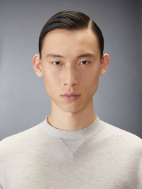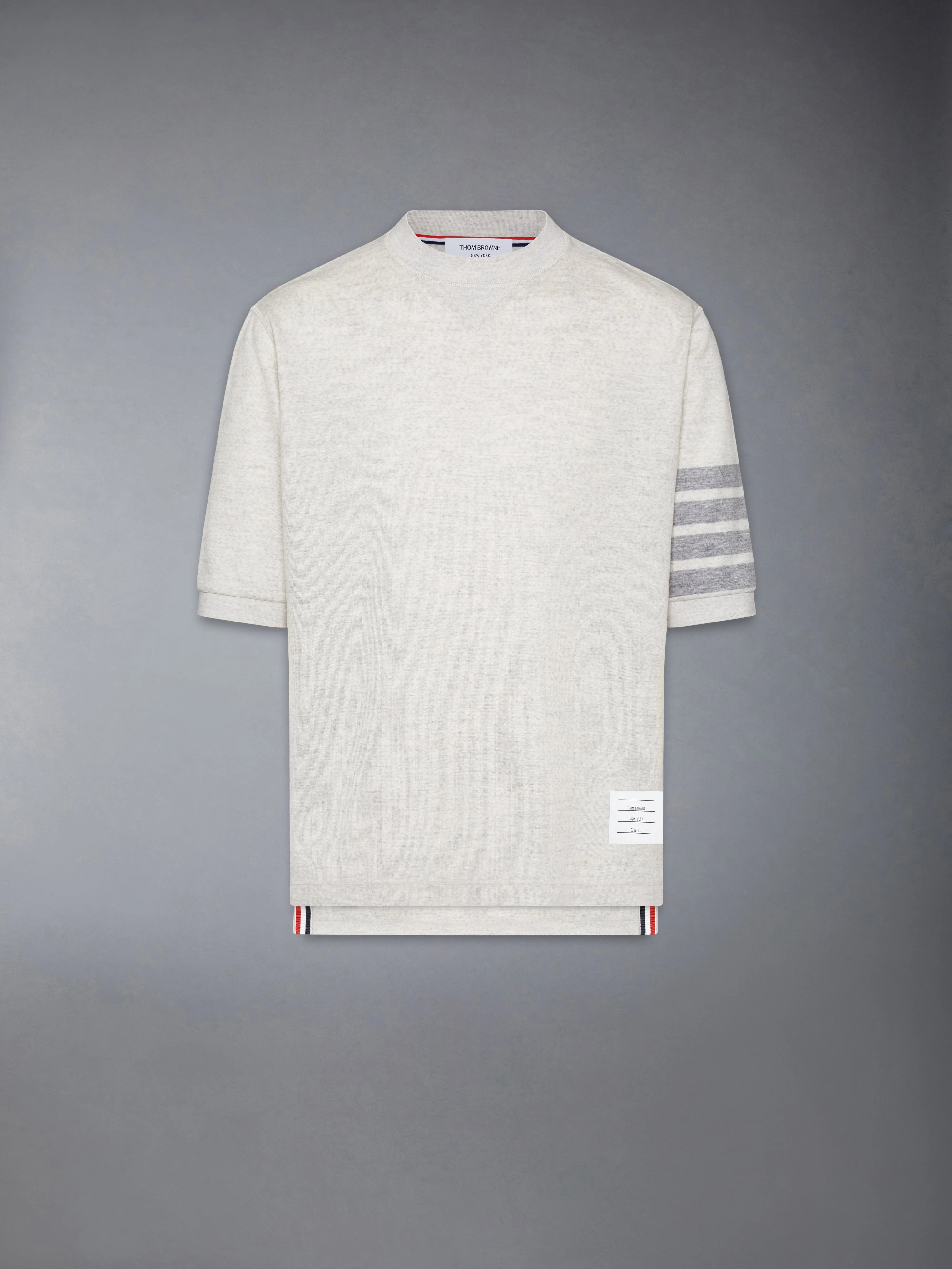 The breathability of a T-shirt meets the warmth of luxurious wool in this hybrid sweater-tee, designed for effortless transitional dressing between seasons. Pair it with our Calf Suede RWB-Stripe Chelsea Boots. 4-bar detailing Name tag applique Buttoned side vents with signature striped grosgrain trim Signature striped grosgrain loop tab Model is 6'1" (185cm), wearing size 1 100% Virgin Wool Made in Italy MJS292A-J0213-050