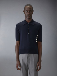 DETAILS & FIT A springtime essential crafted in fine cotton fabric. A polo collar pays homage to our sporty heritage. Partial front button placket 4-bar detailing Buttoned side vents with signature grosgrain trim Signature striped grosgrain loop tab Model is 6'1" (185cm), wearing size 1 100% Cotton Made in Italy MKP135A-Y3043-415