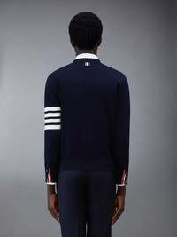 DETAILS & FIT Two Thom Browne emblems define our Cotton Crepe V-neck Cardigan—grosgrain trim and 4-Bar stripe detailing, both synonymous with the brand. V-neckline Front button closure with striped grosgrain placket 4-bar stripe detail at left sleeve Buttoned side vents and cuffs with signature striped grosgrain trim Signature striped grosgrain loop tab at back of neck Buttoned side vents and cuffs with signature striped grosgrain trim Center stripe through back and hood Model is 6' 1" (185cm), wearing size 1 100%Cotton Made in Italy MKC171A-00219-415 - CHEST: 96.0cm - SLEEVE LENGTH: 65.0cm - Shoulder Width: 42.0cm