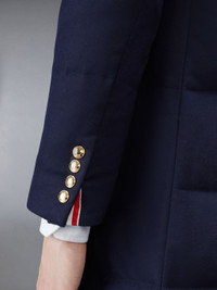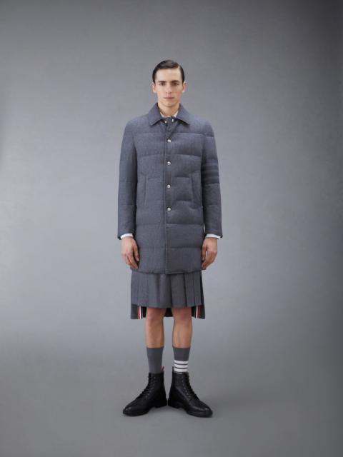 DETAILS & FIT The pinnacle of cold-weather sophistication — our Downfilled Flannel 4-Bar Bal Collar Overcoat. Signature Thom Browne emblems put a twist on fine winter wear. Snap button closure Single back vent Button cuffs Striped lining with Interior pockets and name tag Signature grosgrain loop tab at back of neck Model is 6' 1" (185cm), wearing size 0 95% Wool, 5% Cashmere Padding: 80% White Goose Down, 20% White Goose Feathers Lining: 100% Polyester Made in Italy MOD001Z-06393-415
