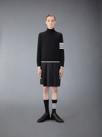 DETAILS & FIT This piece features a signature Thom Browne emblem—our 4-Bar design, emulated after varsity stripes. Pair it with a Thom Browne pleated skirt or sweatpants to dress it up or down. Turtleneck Jersey stitch 4-bar detailing Tipping hem Buttoned cuffs and side vents with signature striped grosgrain trim Signature striped grosgrain loop tab Model is 6' 1" (185cm), wearing size 1 100% Virgin Wool Made in Italy MKA512D-Y1014-001