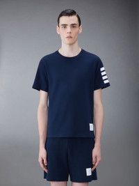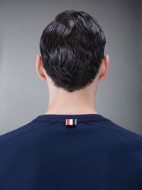 DETAILS & FIT A silhouette that has stood the test of time, this luxe tee is adorned with signature Thom Browne emblems throughout and tailored to perfection. Bound crew neckline 4-Bar detailing Name tag applique above hem Signature striped grosgrain loop tab Model is 6' 1" (185cm), wearing size 1 100% Cotton MJS246A-07323-415