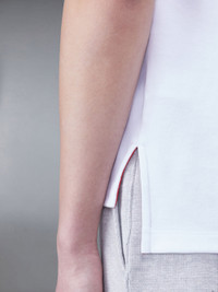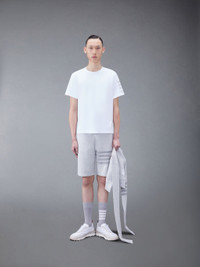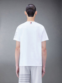 DETAILS & FIT A silhouette that has stood the test of time, this luxe tee is adorned with signature Thom Browne emblems throughout and tailored to perfection. Bound crew neckline 4-Bar detailing Name tag applique above hem Signature striped grosgrain loop tab Model is 6' 1" (185cm), wearing size 1 100% Cotton MJS246A-07323-100