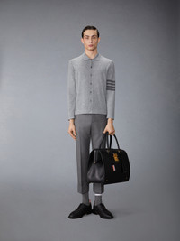 DETAILS & FIT A classic Thom Browne piece crafted in fine cashmere for ultimate warmth. Enjoy our classic 4-bar detailing at the sleeve. Front button closure 4-bar detailing Side vents Signature striped grosgrain loop tab Model is 6' 1" (185cm), wearing size 1 100% Cashmere Made in ITALY MKL006A-Y2018-055