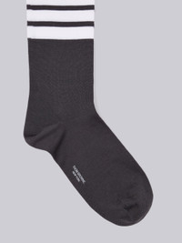 DETAILS & FIT Dark Grey Socks Mid-Calf Length White 4-Bar Stripe Lightweight Cotton Signature Grosgrain Loop Tab NOTES 75% Cotton, 25% Nylon Made in the UK FAS020B01690025