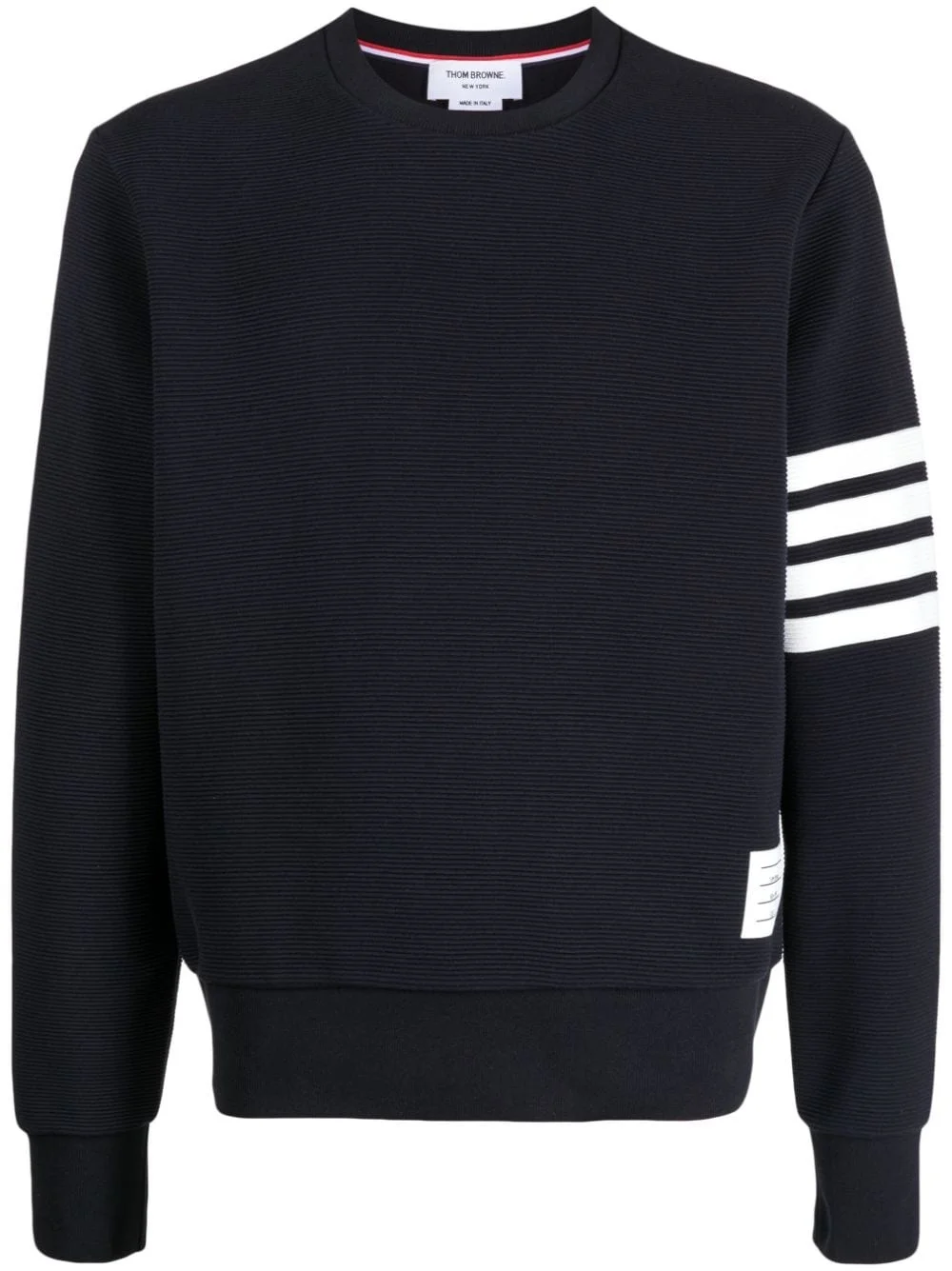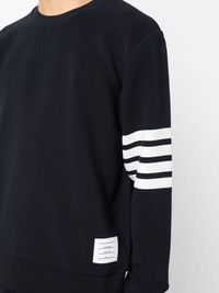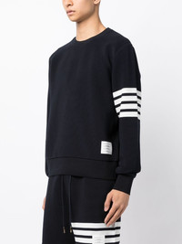 4-Bar stripe sweatshirt Thom Browne's sweatshirt is punctuated with the brand's 4-Bar stripe, an iconic signature that debuted in 2008. This long-sleeve design is cut from subtly ribbed cotton with a buttoned placket. Notice the grosgrain ribbon loop at the rear. Highlights - Navy blue - Cotton - Signature 4-bar stripe - Grosgrain ribbon trim - Crew neck - Long sleeves - Straight hem Made in Italy Composition Cotton 100% SIZE & FIT Model measurements Height 6 ft 2 in(1.87 m) Bust/Chest 31.49 in(80 cm) Hips 37.79 in(96 cm) Waist 27.95 in(71 cm) FittingInformation Designed to be unstructured, offering a loose fit throughout Made from a midweight non-stretch fabric, this piece offers minimal elasticity when worn This piece fits true to size – take your usual size Washing instructions Machine Wash