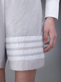 DETAILS & FIT Breezy shorts, perfect for activity-filled, humid spring days. Our Ripstop fabric is ultra-durable, tear and rip-resistant with a water-repellent finish. Drawstring waistband 4-bar detailing Signature striped grosgrain loop tab Model is 6' 1" (185cm), wearing size 0 100% Polyamide Combo1: 100% Cotton Made in Italy MJQ197A-F0517-055