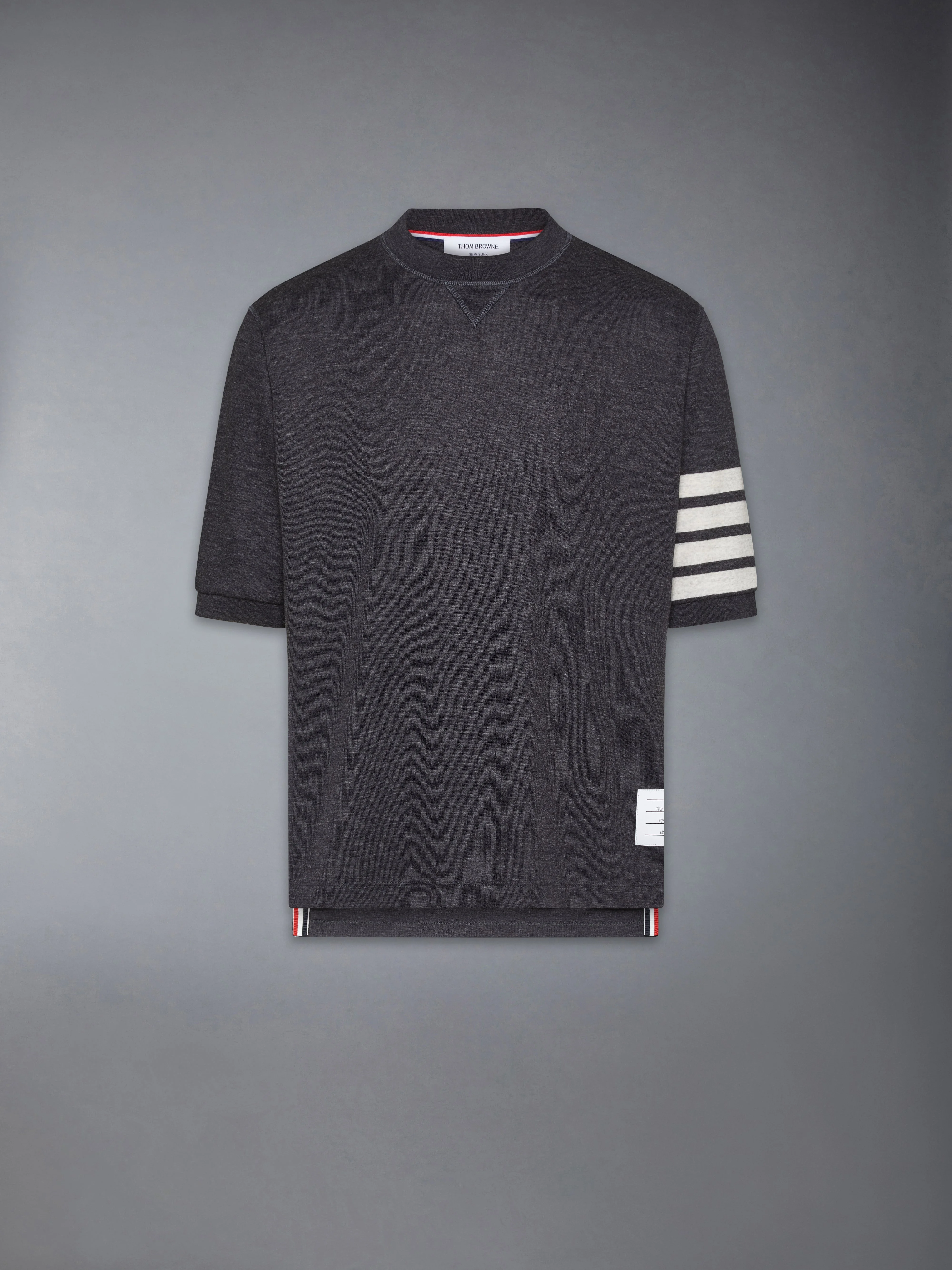 The breathability of a T-shirt meets the warmth of luxurious wool in this hybrid sweater-tee, designed for effortless transitional dressing between seasons. Pair it with our Calf Suede RWB-Stripe Chelsea Boots. 4-bar detailing Name tag applique Buttoned side vents with signature striped grosgrain trim Signature striped grosgrain loop tab Model is 6'1" (185cm), wearing size 1 100% Virgin Wool Made in Italy MJS292A-J0213-015