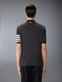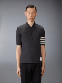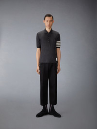 A tribute to our athletic heritage, this warm polo is adorned with iconic 4-bar detailing— a nod to midcentury collegiate and sports uniforms. Crafted in fine wool fabric, it will be a wardrobe staple between shifting seasons and temperatures. Pair it with our classic black trousers. Partial front button closure 4-bar detailing Name tag applique Buttoned side vents with signature striped grosgrain trim Signature striped grosgrain loop tab Model is 6'1" (185cm), wearing size 1 100% Virgin Wool Made in Italy MJP228A-J0213-015