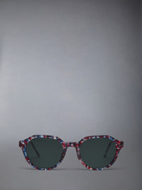 Defined by proportion and precision, these frames balance softened curves with architectural cuts. Crafted in Japan with high-quality acetate, the silhouette draws on Thom Browne's language of tailoring, where structure meets fluidity. Anti-reflective lenses reduce glare, enhance optical clarity, while signature details complete the design. Oval shape Signature 4-bar Striped enamel temple tips Eco-leather case Frame: rwb tortoise acetate Hinges: silver Lenses: charcoal-ar Lens Width: 49 or 52mm Nose Bridge Length: 21mm Temple Length: 147mm 100% Acetate Made in Japan UES944A-G0002-960