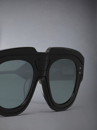 These frames reveal volume through fluid form and contoured clarity. Made in Japan from high-quality acetate, the silhouette reflects Thom Browne’s continual study of proportion and craft, expressed with bold dimensionality. Anti-reflective lenses reduce glare, while signature 4-bar detailing and tricolor enamel temple tips complete the design. Rectangular shape Signature 4-bar Striped enamel temple tips Eco-leather case Frame: black shiny acetate Hinges: silver Lenses: dark grey silver flash-ar Lens Width: 50mm Nose Bridge Length: 21mm Temple Length: 148mm 100% Acetate Made in Japan UES948A-G0002-001