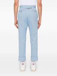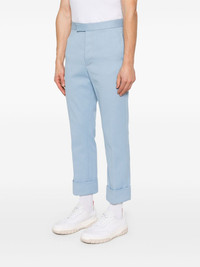 adjustable-strap trousers Highlights - Light blue - Concealed front fastening - Two side slit pockets - Two rear button-fastening jetted pockets - Signature grosgrain loop tab Made in Italy Composition Lining: Cupro 100% Outer: Cotton 100% SIZE & FIT Model measurements Height 6 ft 2 in(1.87 m) Bust/Chest 37.79 in(96 cm) Hips 37.79 in(96 cm) Waist 30.31 in(77 cm) FittingInformation Designed for a slim fit, offering a comfortable fit that sits just away from the leg Made from a midweight non-stretch fabric