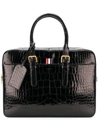 Alligator Leather Business Bag Black alligator leather Alligator Leather Business Bag from Thom Browne featuring top handles, buckled handles, a top zip closure, a main internal compartment, an internal zipped pocket, an internal logo patch, a front slip pocket, a back slip pocket and gold-tone hardware. Please note that this item cannot be shipped outside the E.U.. Please note that this item cannot be shipped outside the U.S.. Please note that this item cannot be shipped outside of Japan.. Made in Italy Composition Outer: Alligator Leather 100% SIZE & FIT Model measurements Height 6 ft 2 in(1.89 m) Bust/Chest 37.79 in(96 cm) Hips 37 in(94 cm) Waist 29.92 in(76 cm) Measurement WIDTH 15.74 in(40 cm) HEIGHT 11.02 in(28 cm) HANDLE 5.51 in(14 cm) DEPTH 2.75 in(7 cm)