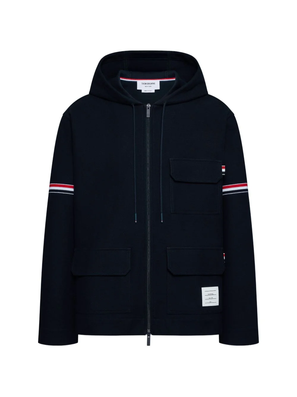 armband oversized parka Highlights - Navy blue - Striped detail - Drawstring hood - Front zip fastening - Front flap pockets Made in Italy Composition Cotton 100% Washing instructions Read Manufacturer Guidelines
