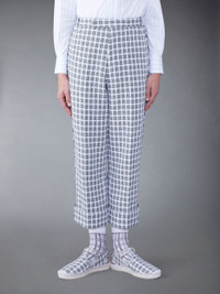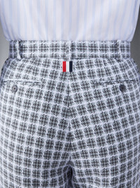 DETAILS & FIT Our Cotton Tweed Gingham Beltloop Trouser. A classic shortened hem pays homage to Thom Browne’s distinguished tailoring. Features a playful gingham pattern — a celebration of the season. Tab front closure Slip side pockets Button-fastening back welt pockets Adjustable buttoned backstrap Signature striped grosgrain loop tab Model is 6' 1" (185cm), wearing size 0 100% Cotton Lining: 100% Cupro MTC413T-F0511-035