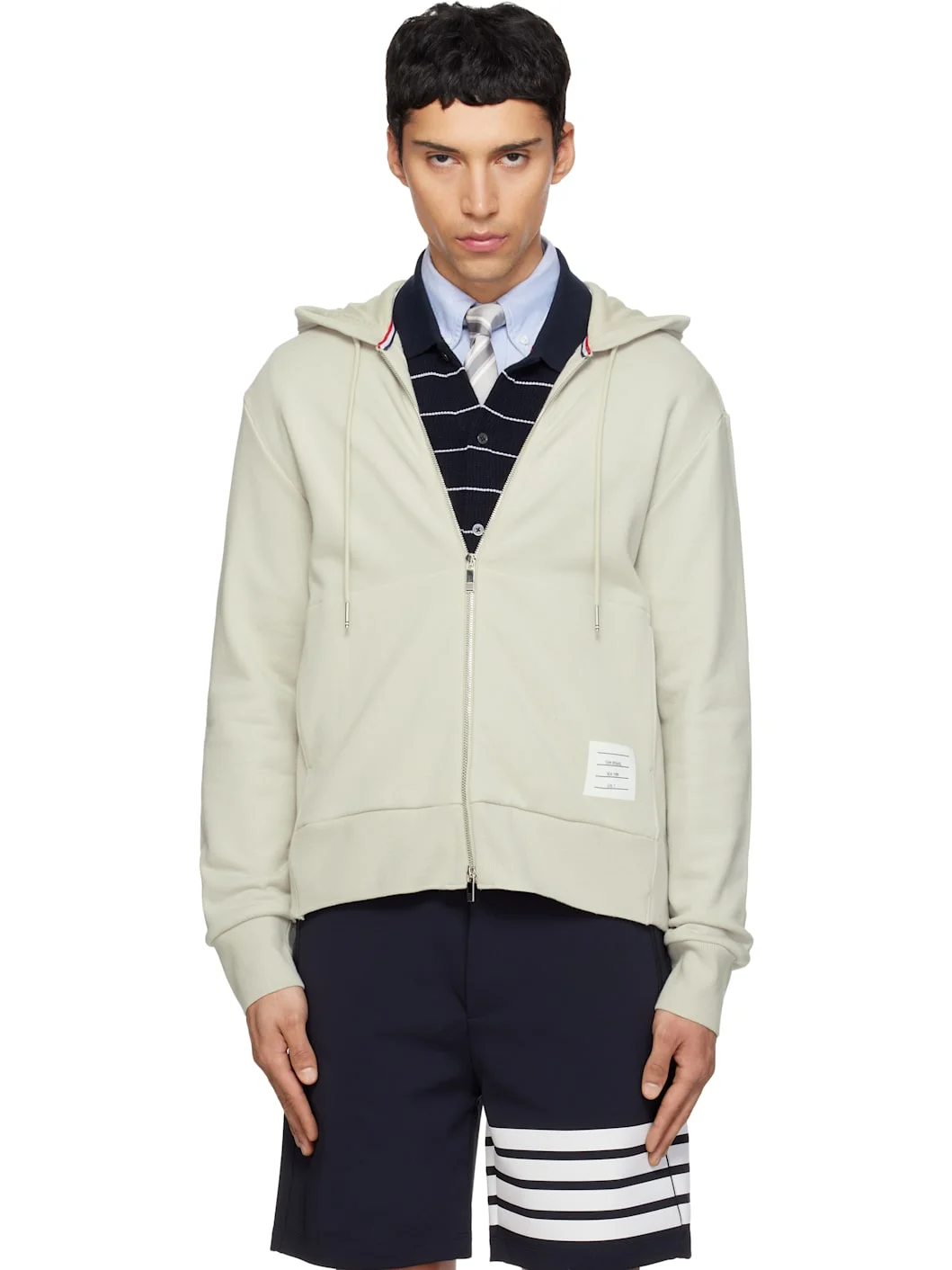 Beige Loopback Jersey 4-Bar Zip Up Hoodie