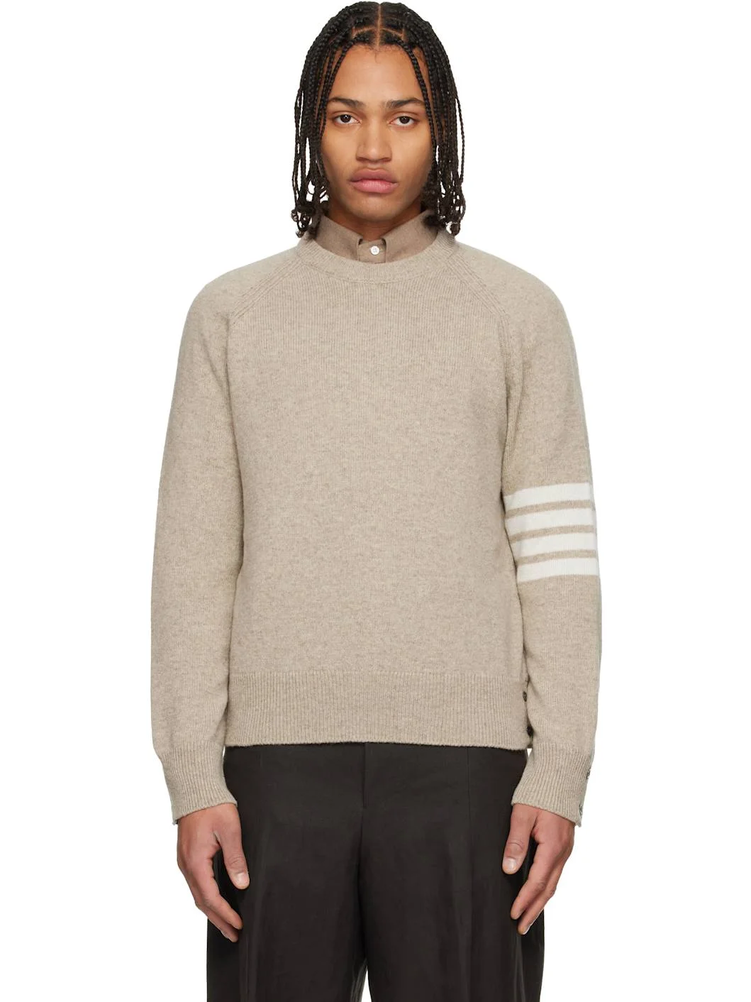 Beige Shetland Wool 4-Bar Relaxed Fit Sweater
