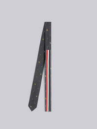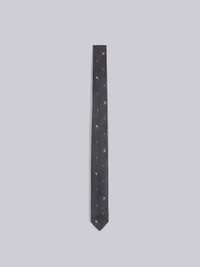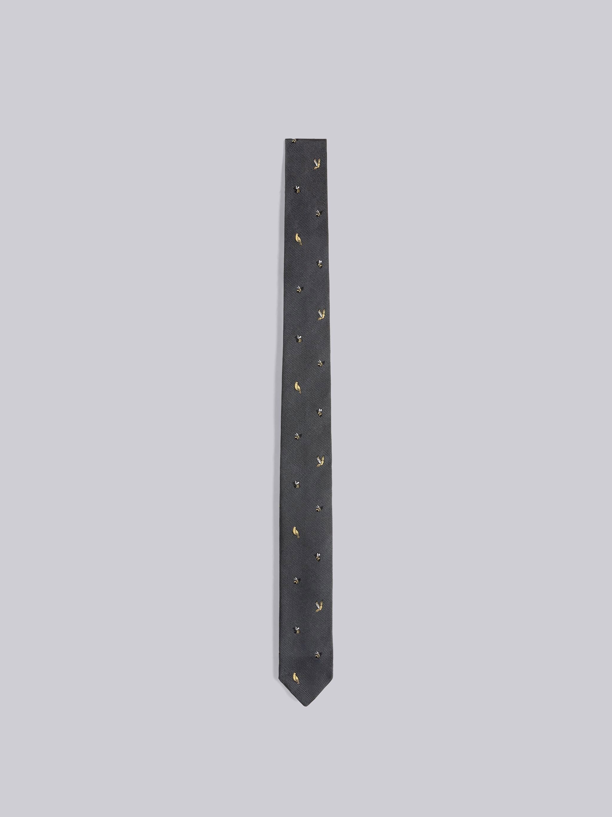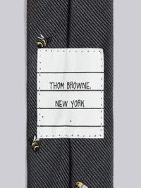 DETAILS & FIT Classic tie in grey tie jacquard with allover birds and bees embroidery. Name tag and striped grosgrain appliques at reverse. 100% Silk Made in Italy MNL001AF0233035