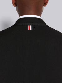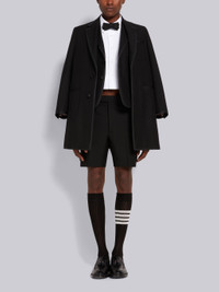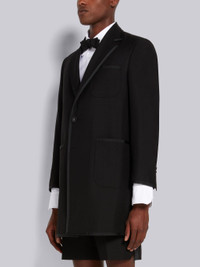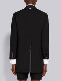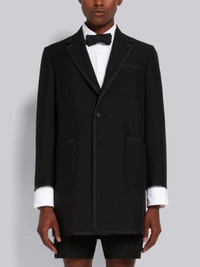 DETAILS & FIT High armhole overcoat in black 3-ply mohair with shrunken patch pockets and allover tonal grosgrain tipping details. Single grosgrain-covered button closure, notch lapels, 3 patch front pockets. Deep buttoned single back vent. Buttoned cuffs with signature striped grosgrain trim. Striped lining with interior pocket and name tag. Signature striped grosgrain loop tab at back of neck. High Armhole - Fit 3. Model is 6' 1" (185mm), wearing size 0. 60% Wool, 40% Mohair Made in Japan MOC737B00170001