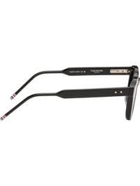 Square acetate-frame sunglasses. · Gray lenses · Keyhole bridge · Integrated nose pads · Enameled tricolor stripes at temple tips · Includes case · Size: 48.23 147 Supplier color: Black Acetate. Made in Japan 261381M134011