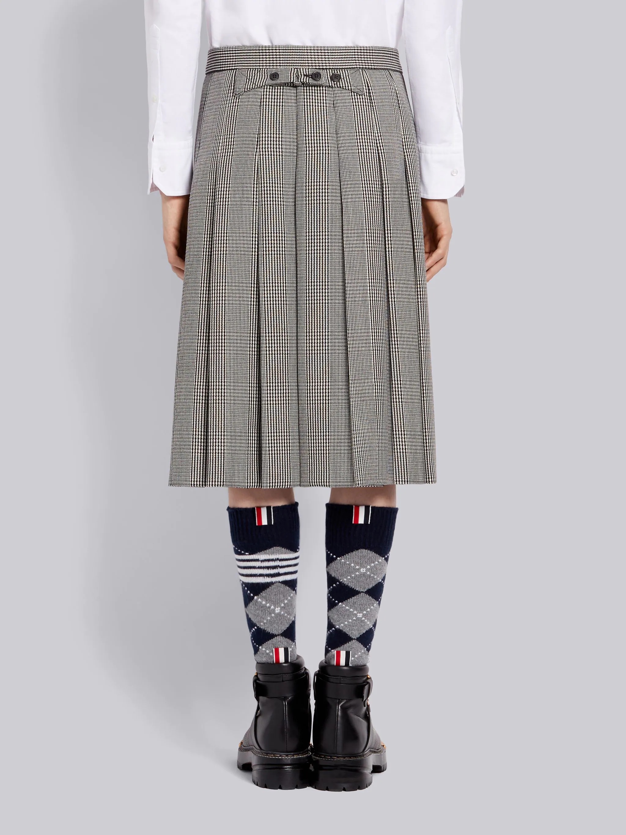 DETAILS & FIT Black and White Pleated Skirt Wool Cavalry Twill Fit 1 Prince of Wales Print Adjustable Backstrap Knee Length Front French Fly Signature Grosgrain Trim Signature Grosgrain Loop Tab Model is 6'1"" (186 cm), wearing size 0. NOTES 100% Wool Made in Italy MGC019A06298980