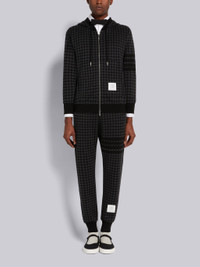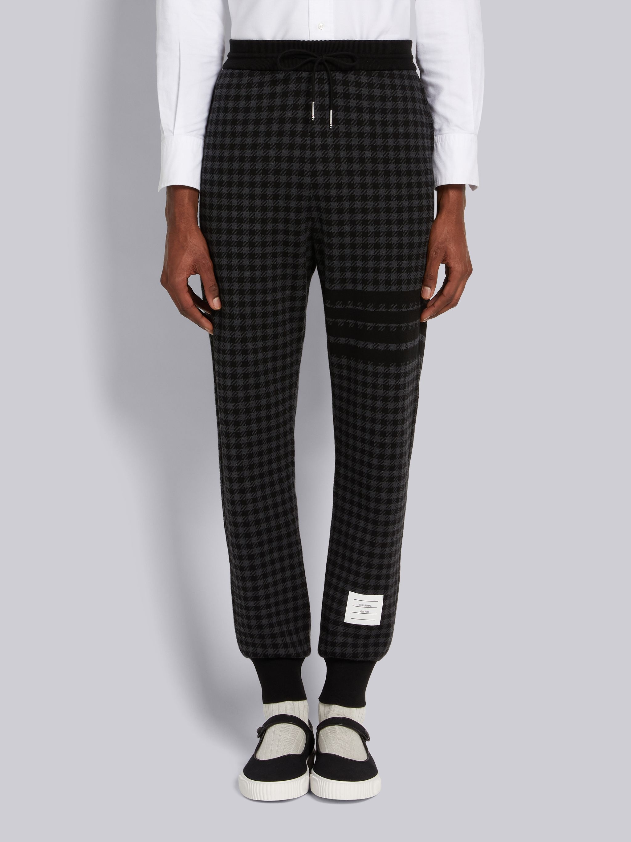 DETAILS & FIT Tapered sweatpants in black and grey gunclub check cotton jacquard with 4-bar stripe detail at left thigh in black. Drawstring waist. Slant side pockets, single back welt pocket. Name tag above left cuff. Signature striped grosgrain loop tab at back waist. Model is 6' 1" (185cm), wearing size 0. 100% Cotton Made in Italy MJQ125A07671001