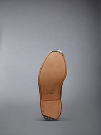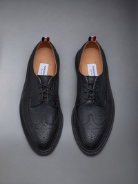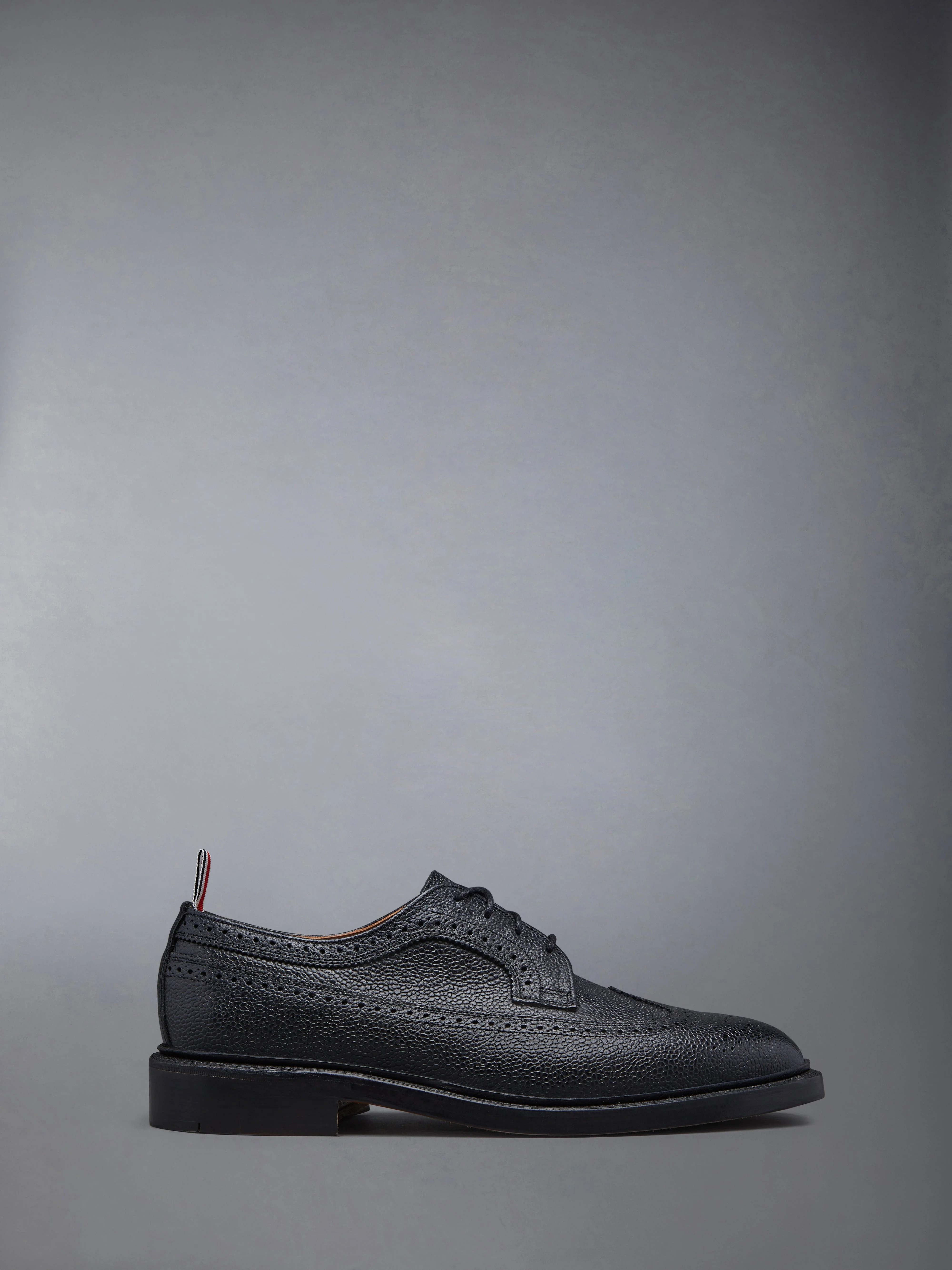 Crafted with the highest quality of classic shoemaking, our Pebble Grain Longwing Brogue is a staple in Thom Browne's legacy. Features an elongated toe, leather sole, and streamlined silhouette. Lace up closure Perforated broguing throughout Tonal leather sole Leather insole and lining Signature striped grosgrain loop tabs at heels Upper: 100% Calf Leather Sole: 100% Calf Leather Lining: 100% Calf Leather Made in the UK MFD002A-00198-001