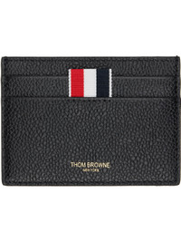 Pebble-grained calfskin card holder. · Logo stamp and tricolor loop at face · Two card slots · Central note slot · Embroidered graphic pattern at back face · Textile lining · H2.75" x W4" Supplier color: Black Calfskin. Made in Italy 252381M163009