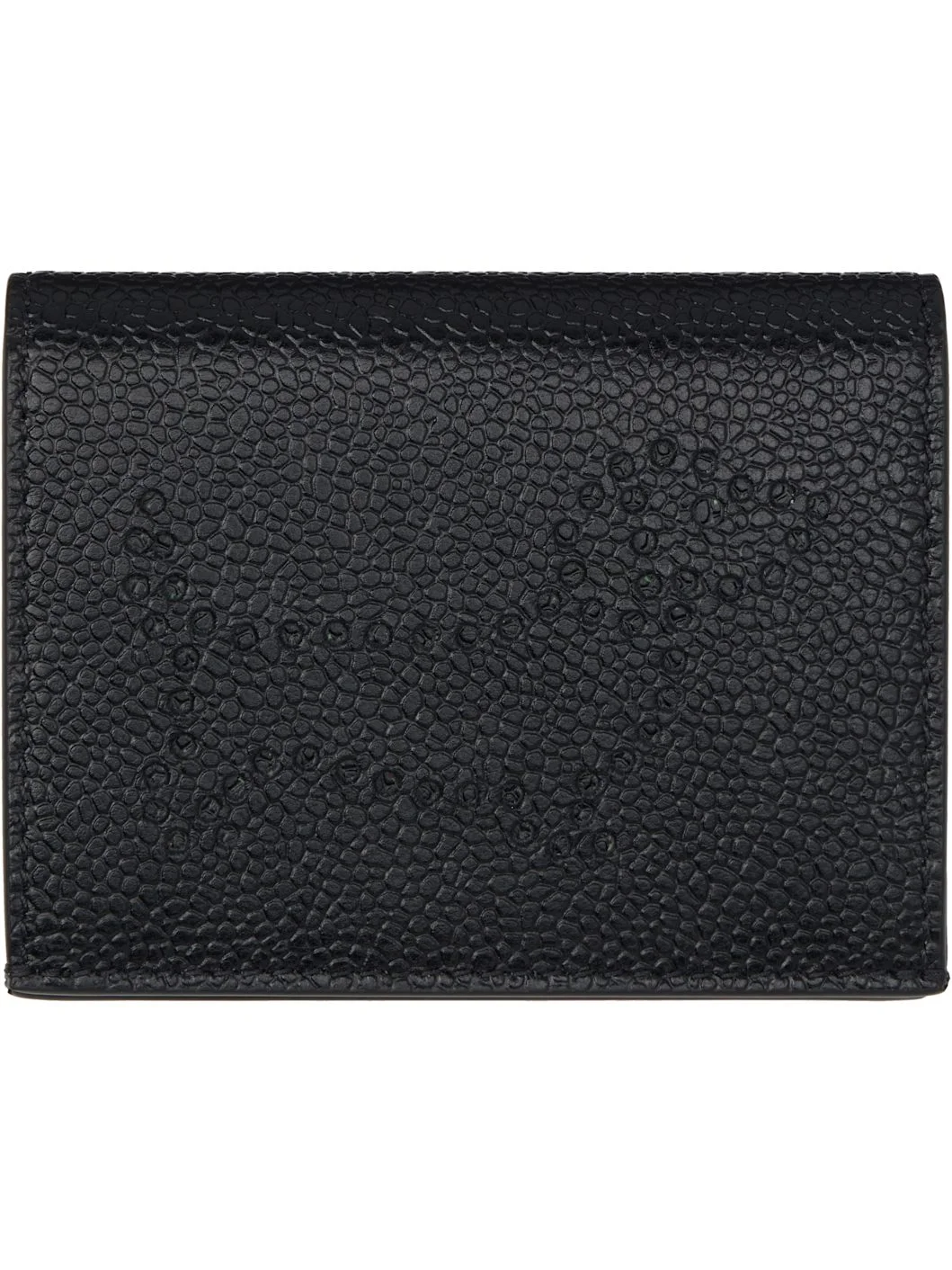Pebble-grained leather card holder. · Perforated graphic at face · Four card slots · Two note slots · Tricolor grosgrain flag at interior · Moire and grosgrain lining · H3" x W4" x D1" Supplier color: Black Leather. Made in Italy 261381M163012