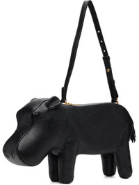 Sculptural pebble-grained calfskin messenger bag. · Adjustable shoulder strap · Tricolor grosgrain flag at top · Zip closure · Patch pocket at interior · Tricolor grosgrain lining · H7.5" x W12.5" x D3" Supplier color: Black Calfskin. Made in Italy 252381M170004