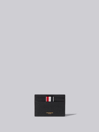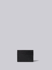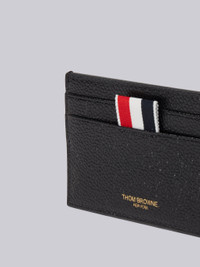 Black Pebble Grain Leather Grosgrain Tab Double Sided Card Holder