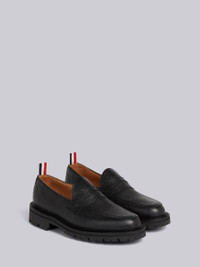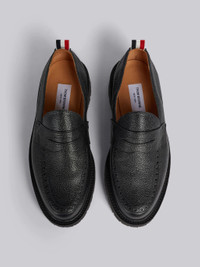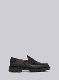 Black Pebble Grain Leather Rubber Commando Sole Classic Penny Loafer