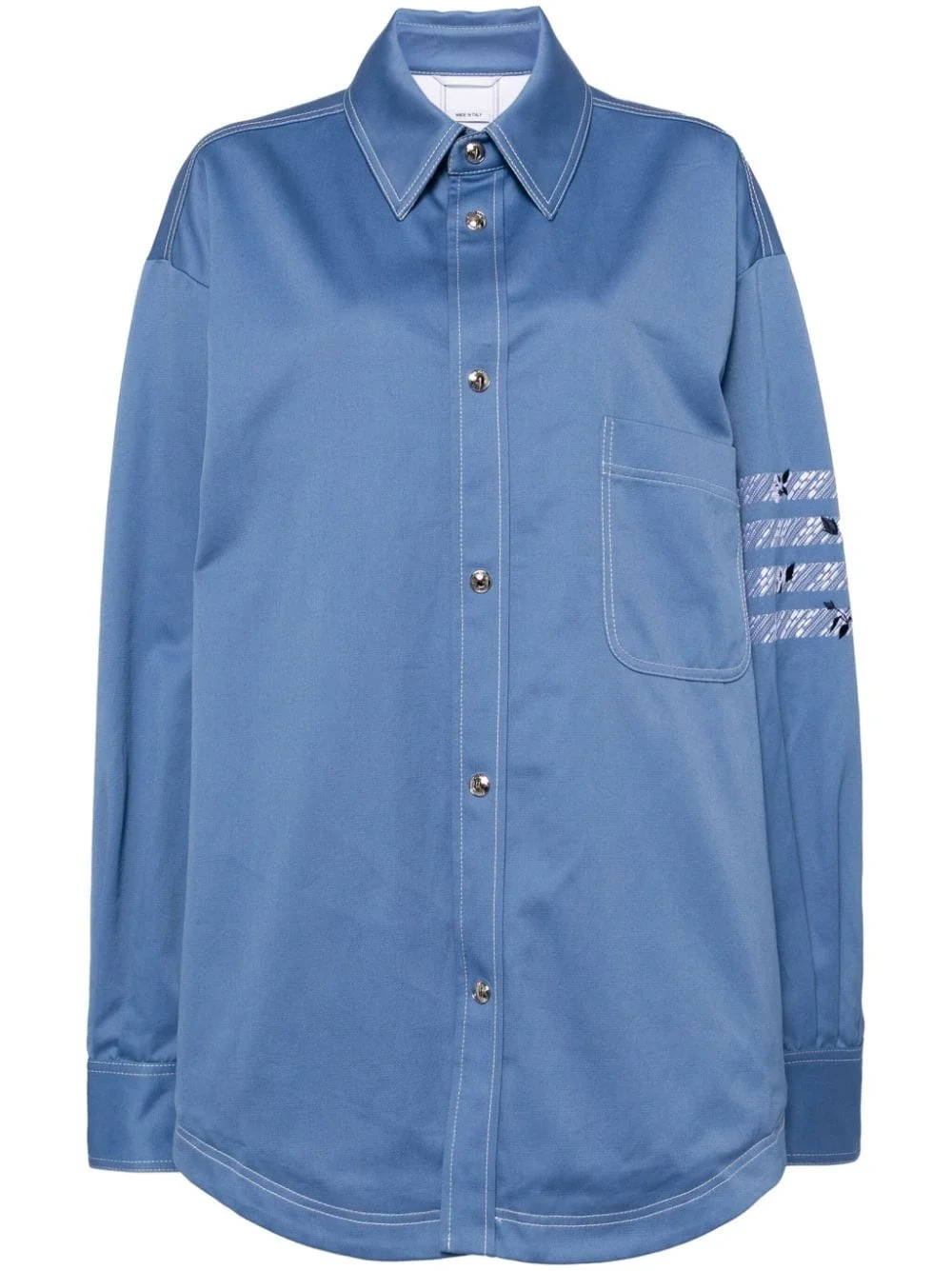 contrast-lining cotton jacket Highlights - Powder blue - Cotton - Contrast lining - Stripe detailing - Classic collar - Front press-stud fastening - Chest patch pocket - Long sleeves - Press-stud fastening cuffs - Curved hem Made in Italy Composition Outer: Cotton 100% Lining: Cupro 100%