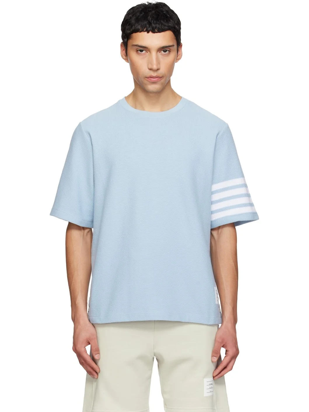 Blue Textured Pique 4-Bar T-shirt
