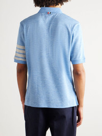 Thom Browne combines elements from retro sportswear and classic polos in this T-shirt. Designed with a V insert along the neckline, it's been made in Italy from fine wool-jersey and has a split hem reinforced with striped grosgrain along the side slits. Size & Fit - Size 0 = XS, 1 = S, 2 = M, 3 = L, 4 = XL, 5 = XXL and 6 = XXXL - Fits true to size. Take your normal size - Designed for a relaxed fit - Fine knit - Model is shown wearing a 2 - Model measures: chest 38"/ 96cm, height 6'2"/ 188cm Details & Care - Light-blue and beige melange wool-jersey - 100% wool - Dry clean - Mother-of-pearl: Indonesia