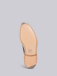 DETAILS & FIT Classic penny loafer in dark brown box calf leather with black Goodyear leather sole. Apron toe with broguing details. Steel heel and toe taps. Signature striped grosgrain loop tab at heel. Upper: 100% Calf Leather Sole: 100% Calf Leather Lining: 100% Calf Leather Made in the United Kingdom MFL090A06549210