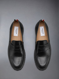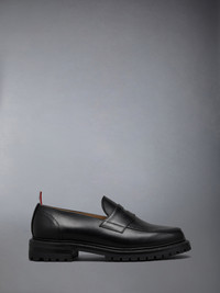 A timeless staple, our penny loafers are crafted from supple box calf leather and finished with signature striped grosgrain trim. They pair effortlessly with our Washed Cotton Utility Cargo Trousers. Slip on Goodyear commando sole Signature striped grosgrain loop tabs at heels Upper: 100% Calf Leather Sole: 100% Rubber Lining: 100% Calf Leather Made in Italy MFD054H-06764-001