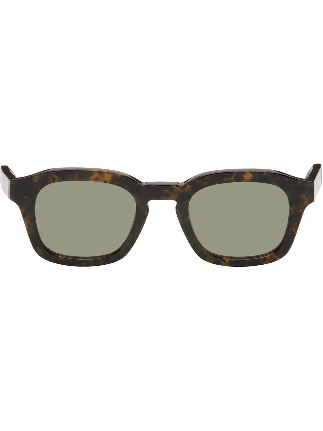 Square tortoiseshell semi-transparent acetate-frame sunglasses. · Khaki lenses · Keyhole bridge · Integrated nose pads · Enameled tricolor stripes at temple tips · Includes case · Size: 48.23 147 Supplier color: Dark brown Acetate. Made in Japan 261381M134009