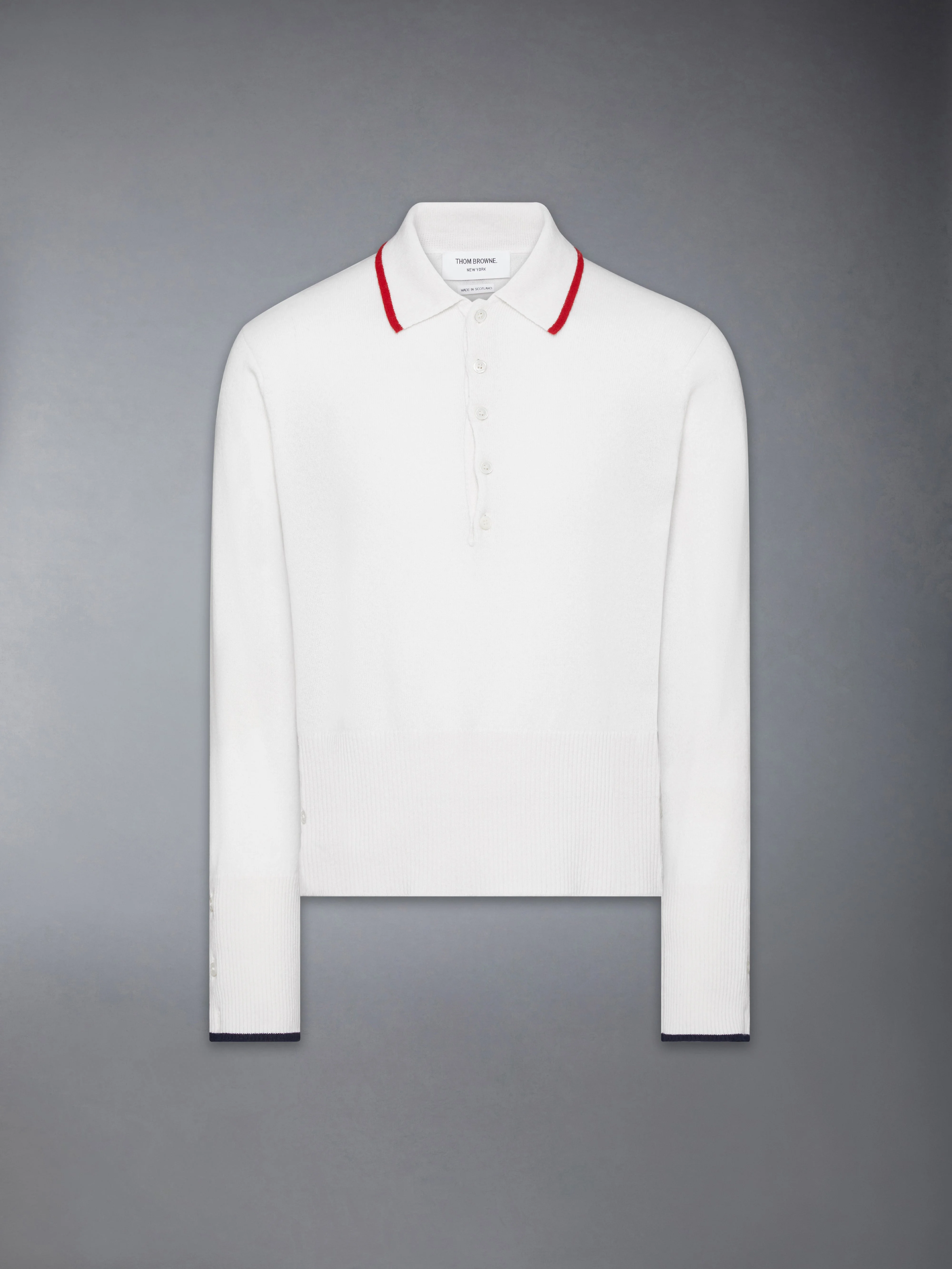 BROWNE 65 JERSEY INTARSIA CASHMERE LONG SLEEVE POLO